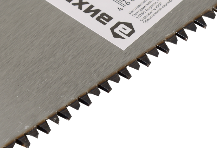 Ножовка ВИХРЬ 450 мм 3D заточка - это ручной инструмент для пиления древесины и других материалов. Длина ножовки 450 мм, шаг зуба 7-8 TPI. Ножовка изготовлена из углеродистой стали с твердостью закаленного зуба 46–52 HRС. Зубья имеют трехгранную (3D) заточку. Эта технология позволяет значительно увеличить скорость резки и уменьшить нагрузку на руки.
